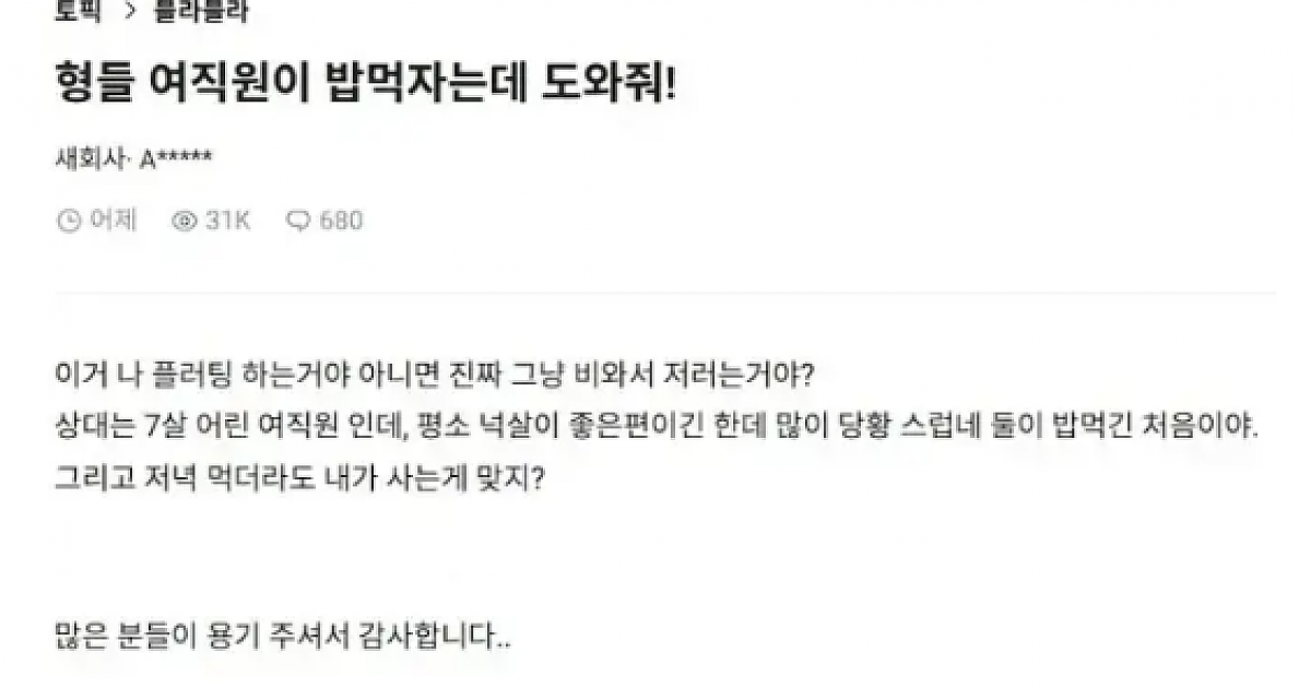 형들 여직원이 밥먹자는데 도와줘