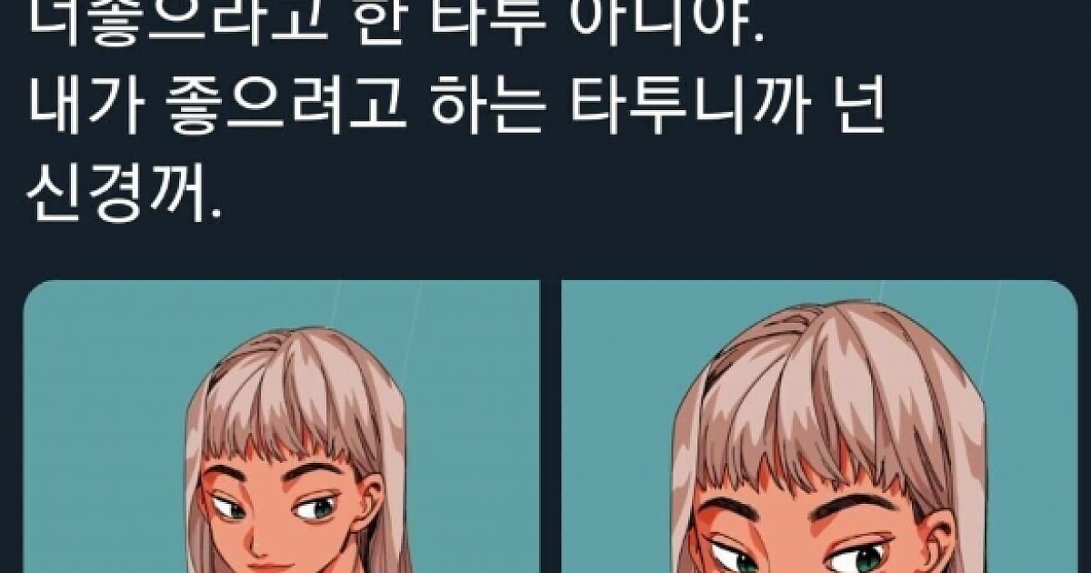 여자는 보여주려고 타투 하는거 아님 킬링타임 유머 0 45 0 2024.03.18 20:35 링크복사 ㅋㅋㅋㅋㅋㅋㅋㅋㅋㅋㅋ 자기들끼리 분열 잼... 심오한 세계구만.. 링크복사 0 킬링타임 0 0