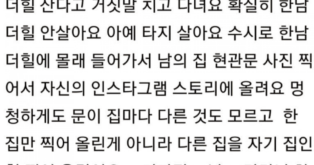 한남더힐 사는 친구 킬링타임 유머 0 6 0 2024.03.14 21:14 링크복사 요약 한남더힐 사는 척 하려고 건물 들어가서 남의 집 문 사진 찍고 인스타 스토리에 올림 근데 머리가 나빠서 그런지 올 릴 때 마다 문이 다름 ㅋㅋㅋㅋㅋ 세상에 정신병자들 진짜 많은듯.. 링크복사 0 킬링타임 0 0