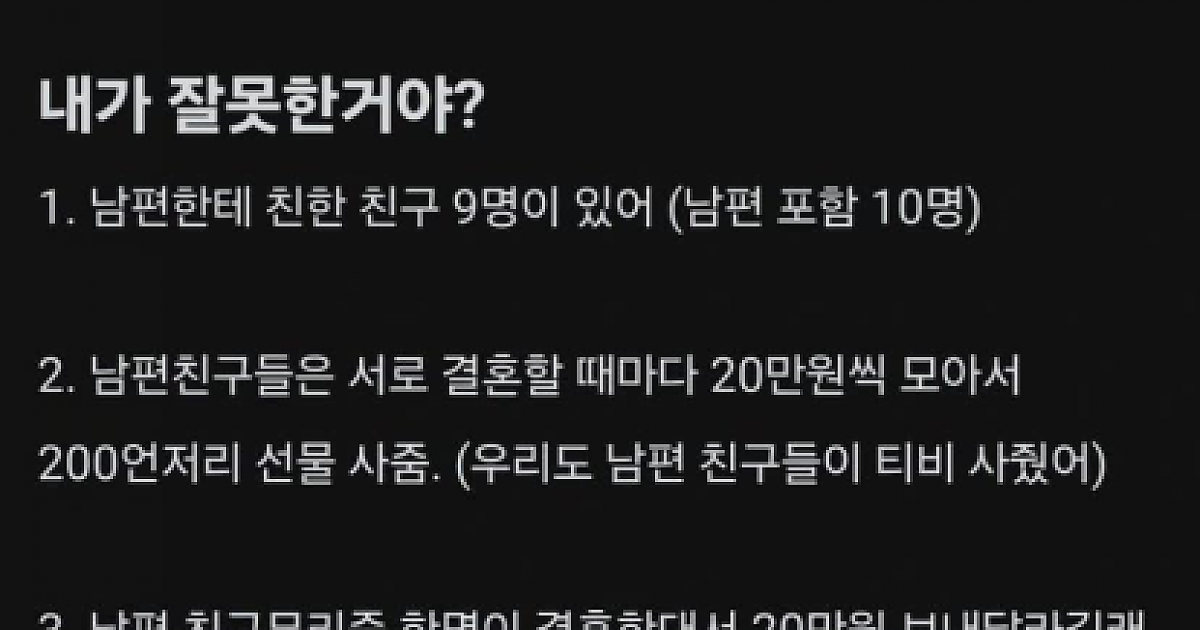어릴 때 도와줬던 친구를 돕고싶단 남편에게 20만원 주기 아깝다는 와이프 킬링타임 유머 0 12 0 2024.03.11 13:30 링크복사 의리라는 걸 몰라서 저러는걸까... 남편분도 생각 많아지시겠네..... 와이프도 와이프만의 사정이 있겠지만.. 링크복사 0 킬링타임 0 0