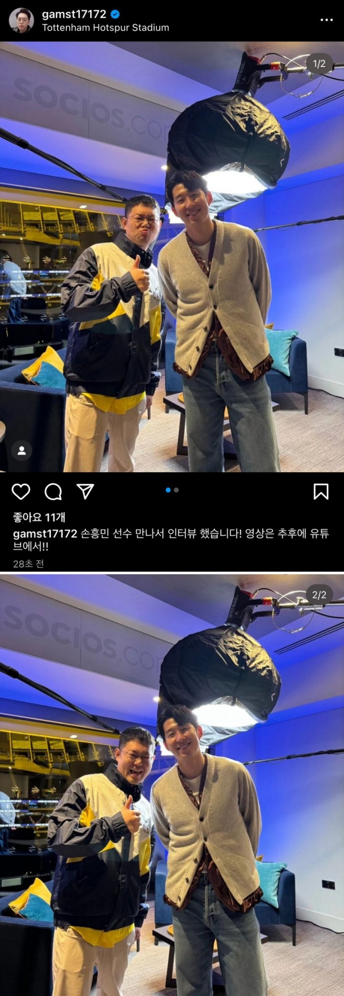 손흥민이랑 사진 찍은 감스트 인스타