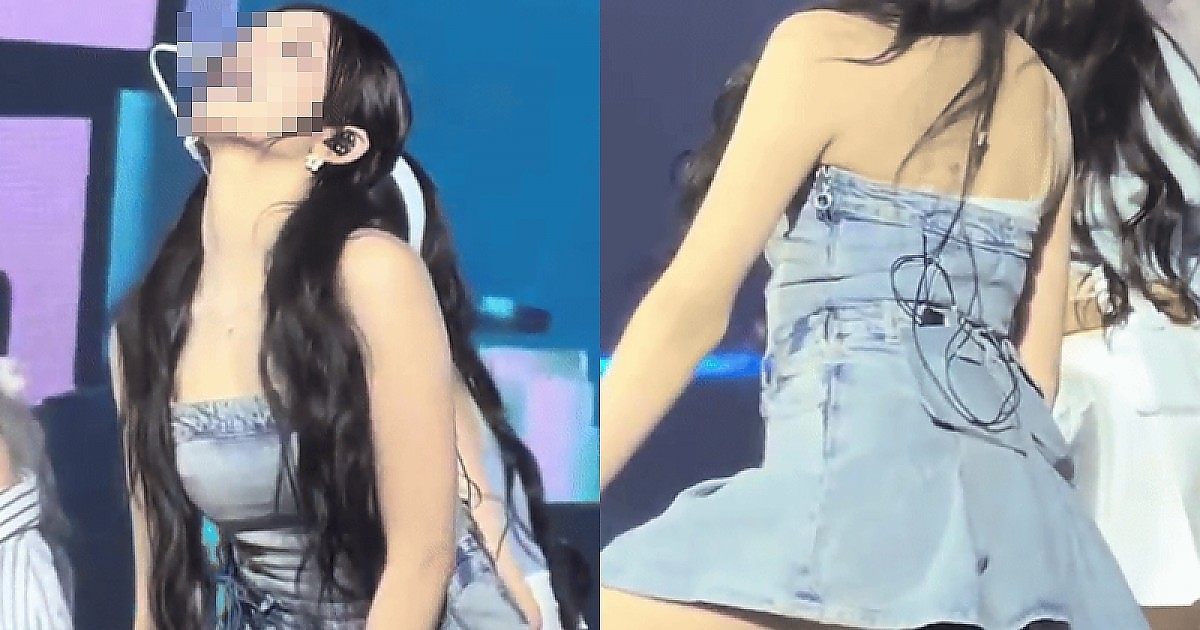 짧디짧은 데님 원피스 입고 역대급으로 살랑살랑 거리며 무대 선보이는 아이돌...ㄷㄷㄷㄷ
