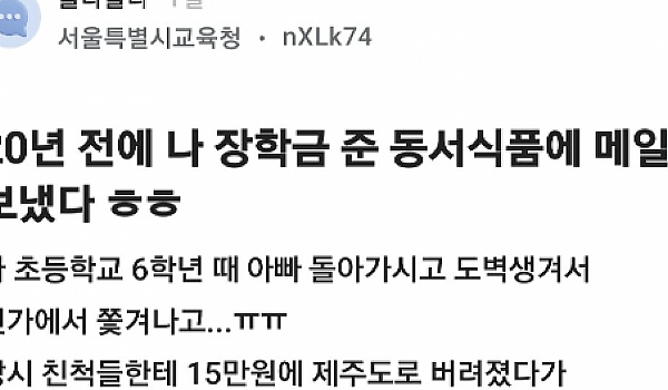 20년 전 동서식품 장학생으로 뽑혔던 학생 후기