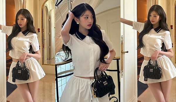 '크롭 셔츠' 의상으로 드러내는 아름다운 몸매의 '장원영'