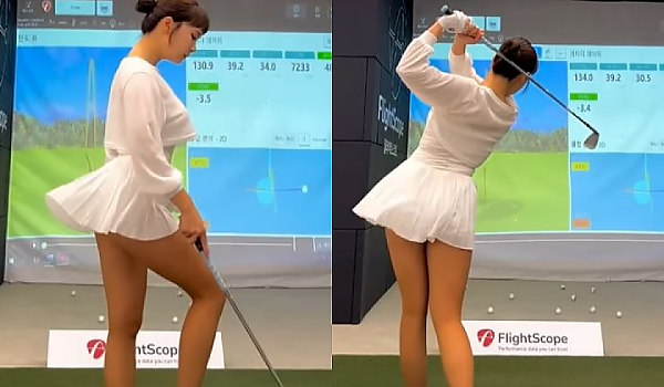 순간 바람의 여신 같았던 치마를 흩날리는 우아한 김은선 프로의 아이언샷.gif
