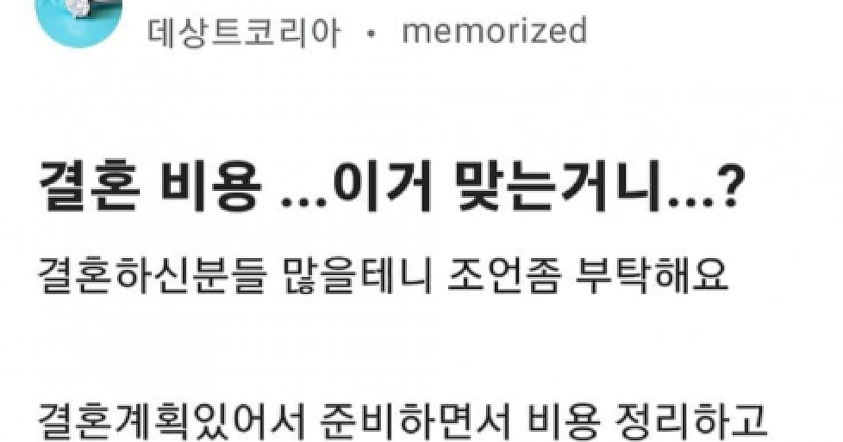 결혼 비용이 너무 많이 나와서 당황한 사람