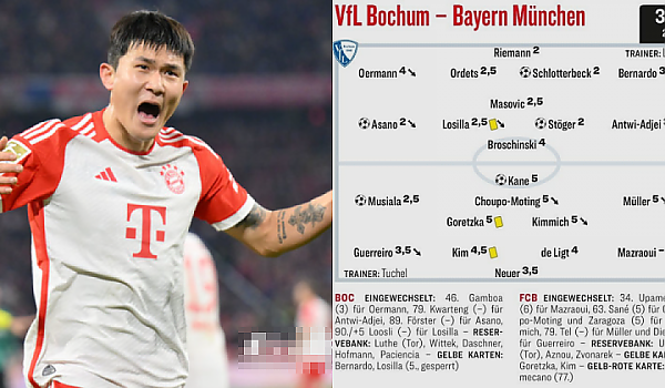 오늘자 뮌헨 경기 이후 김민재한테 선발 수비수들 중 최저점을 준 키커..