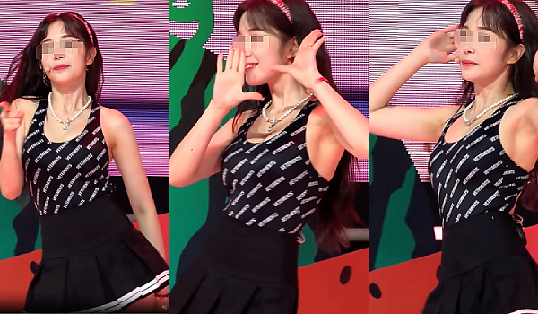 '검은 수영복 위에 교복치마' 의상 컨셉의 선이 아름다운 아이돌(영상)