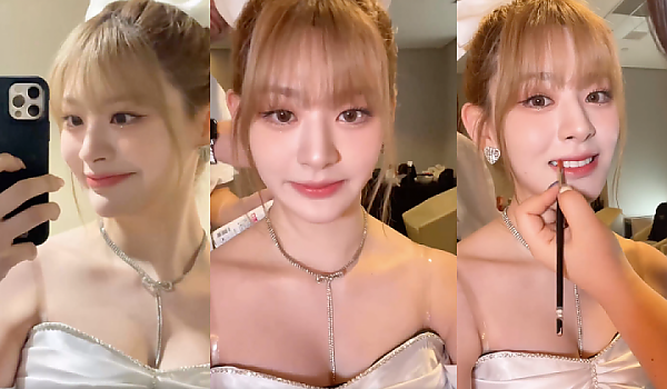 메이크업 받는 스테이씨 세은 '오프숄더 드레스'로 드러내는 아름다움