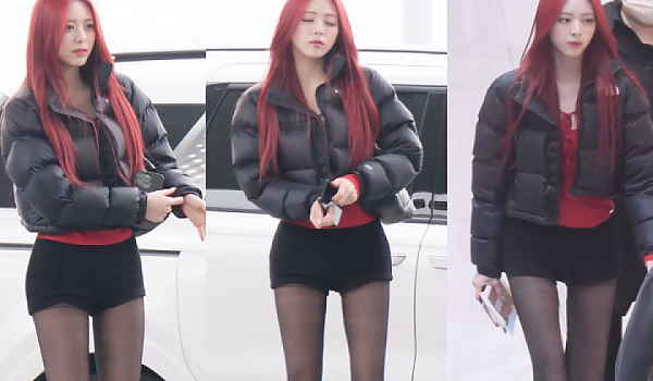 '블랙 핫팬츠' 공항패션으로 드러내는 '아름다운 각선미' 있지의 유나