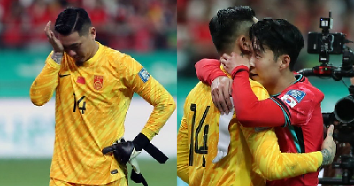중국의 골문을 든든하게 지키던 '중국판 요리스'의 눈물을 위로하는 손흥민.....ㅠㅠㅠ(영상)