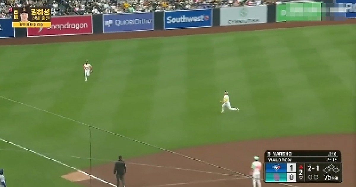 [vs 토론토] 미친듯이 따라가 타구 처리하는 김하성 ㄷㄷㄷ.gif