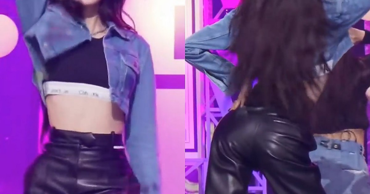 청자켓 속 크롭탑 입고 키치 추는 장원영(영상)