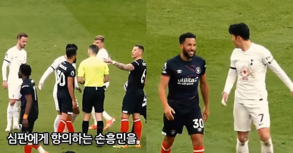 경기 중 심판에게 항의하는 과정에서도 동료에게는 웃어주는 손흥민 (영상)