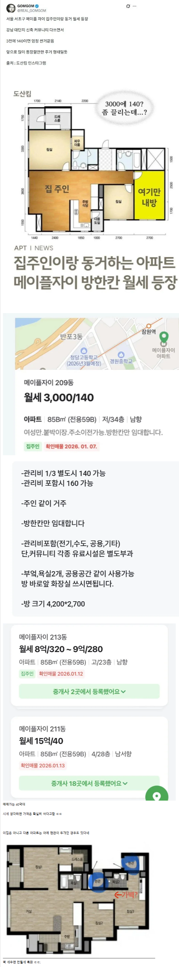 강남 월140만원내고 집주인과 동거하는 월세 등장