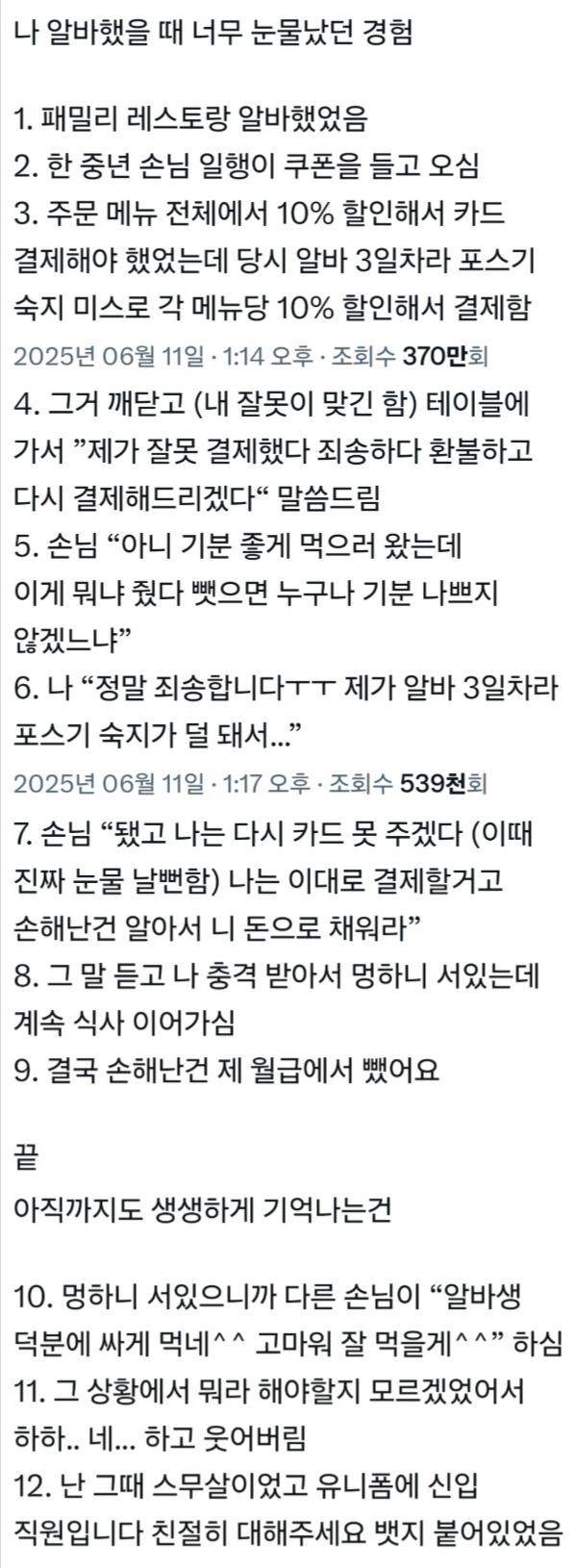 나 알바했을 때 너무 눈물 났던 경험