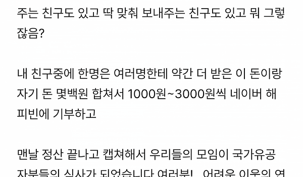 모임 정산한 돈으로 소액기부 하는 친구