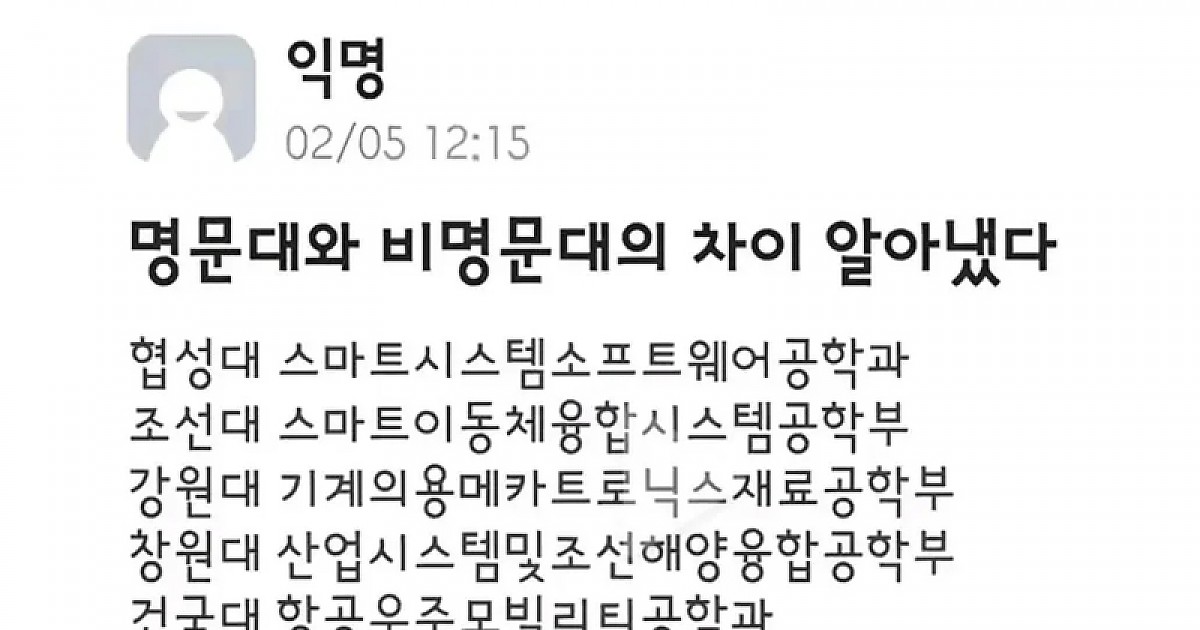 명문대와 비명문대의 차이점을 깨달았다는 대학생