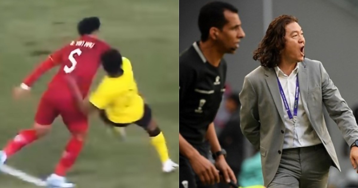 누가봐도 베트남 반칙인데 반대로 공격당한 말레이시아 선수를 퇴장시키네...