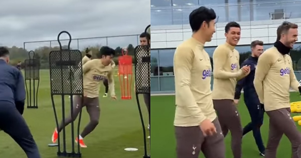 뉴캐슬전 앞두고 역대급 좋은 분위기로 훈련하는 토트넘 선수들과 쏘니 (영상)