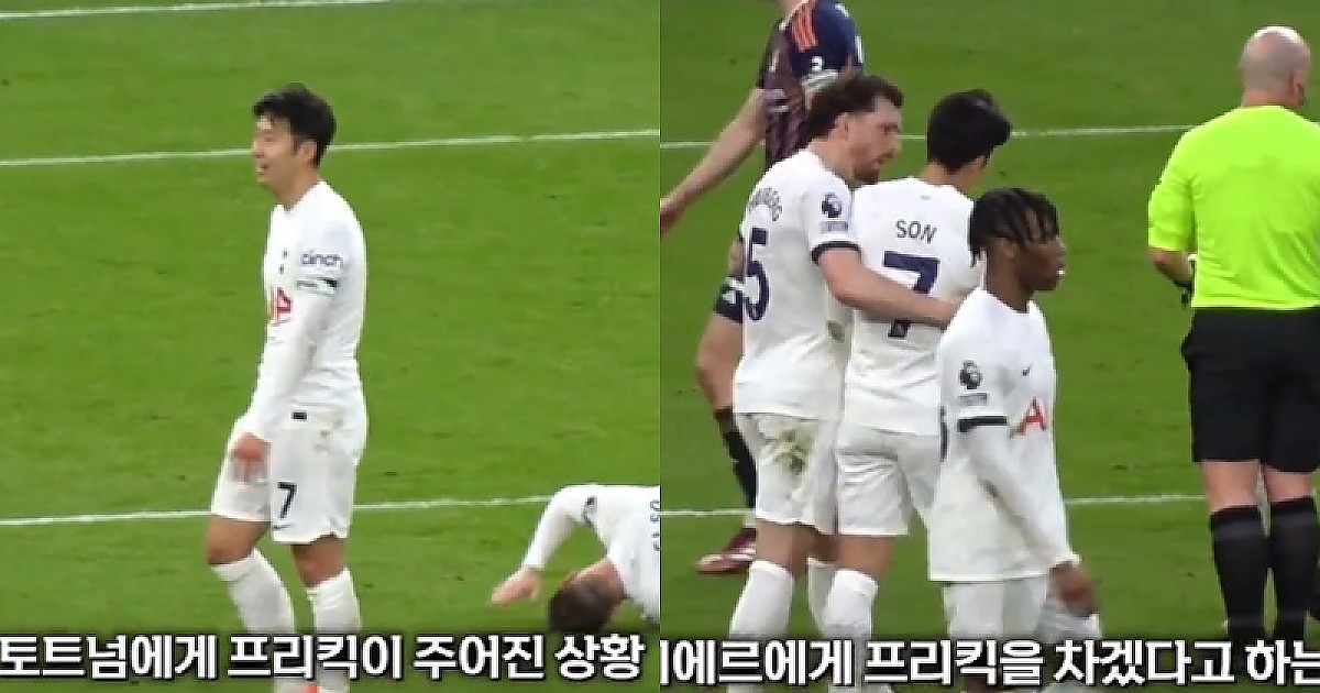 호이비에르에게 프리킥을 차겠다고 쪼르는듯한 손흥민 ㅠㅠ(영상)