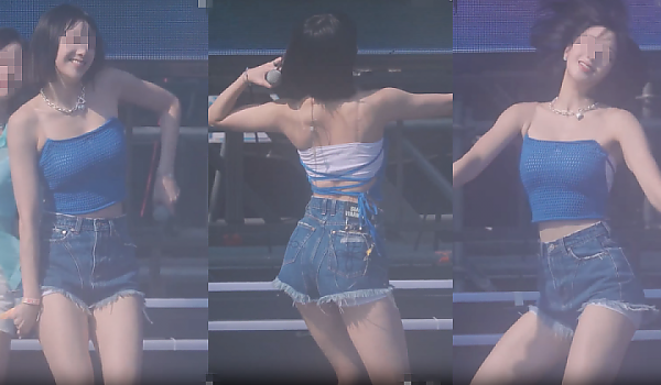 올블랙 '짧은 핫팬츠' 의상으로 드러내는 '새하얀 몸매'의 아이돌(영상)