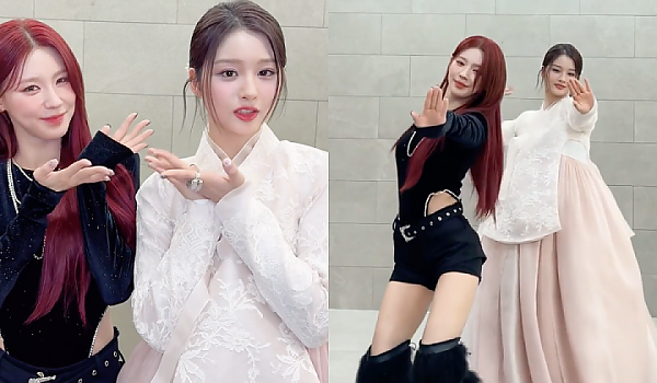 한복 입은 설윤과 블랙원피스의 미연의 아름다운 춤선 (영상)