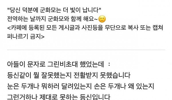 화들짝... 논란중인 아들 군대보낸 어머니의 글