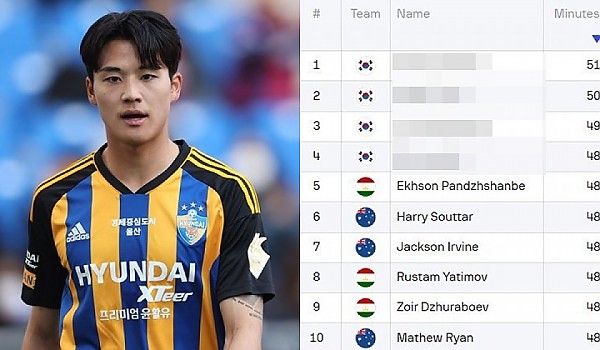 [아시안컵] 현시점 출전시간 3위, 휴식이 필요한 선수