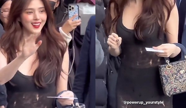 해외에서 시스루 드레스 입고 팬 맞이해주는 예쁜 '한소희' (영상)