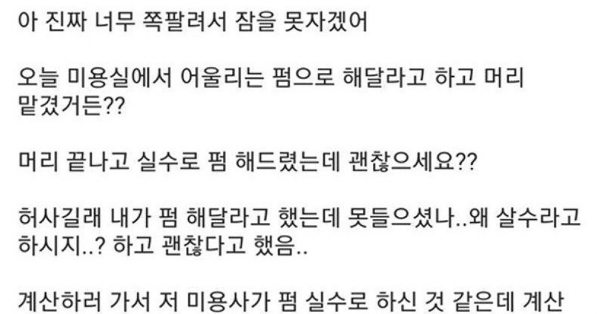 미용실에서 실수로 펌 했다는거야