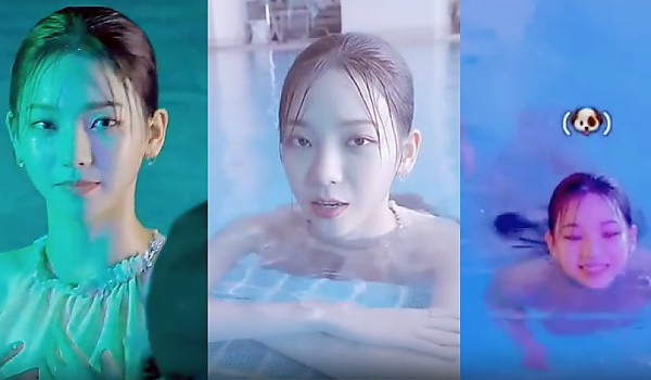 수영장에서 강아지 처럼 신나게 노는 '에스파 카리나' (영상)