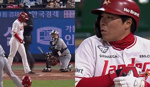 타임요청을 못들은 한화 투수 박상원이 던진 공에 쫄아버린 '소녀' 한유섬ㅋㅋㅋㅋ.gif