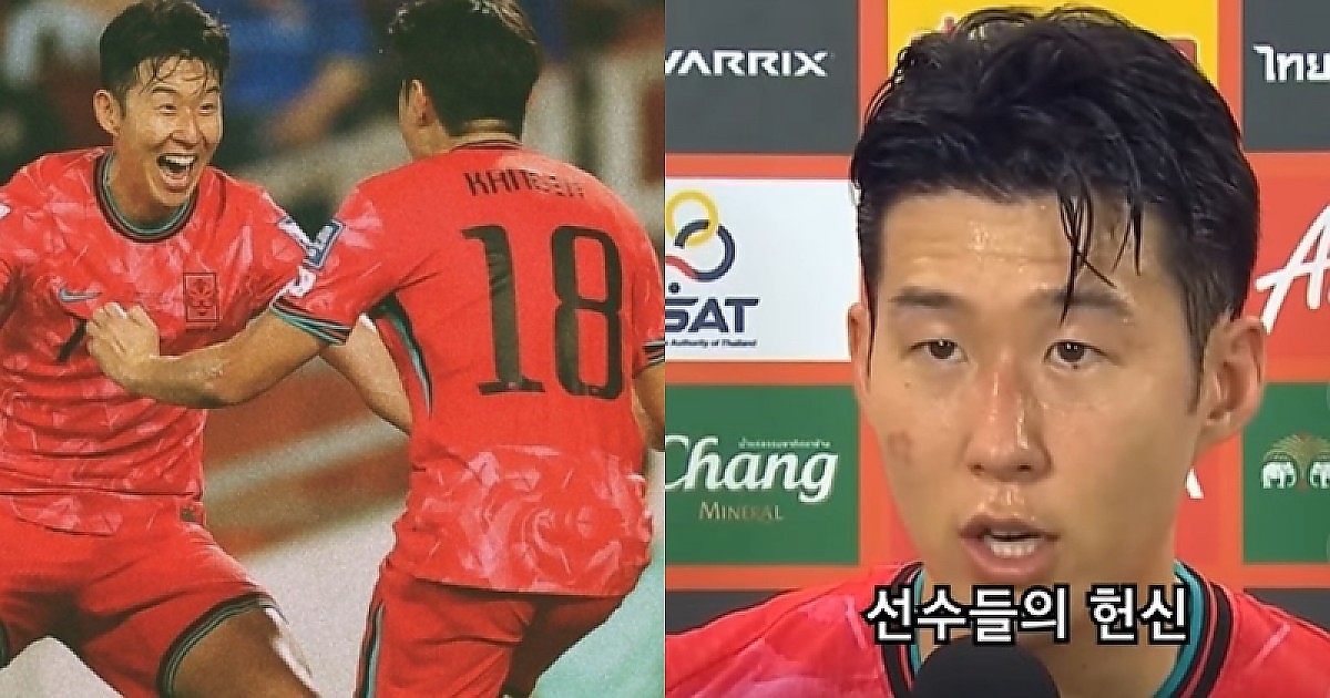 인터뷰 중 누군가 물을 뿌리자 놀란 손흥민의 예상치 못한 반응 (영상)