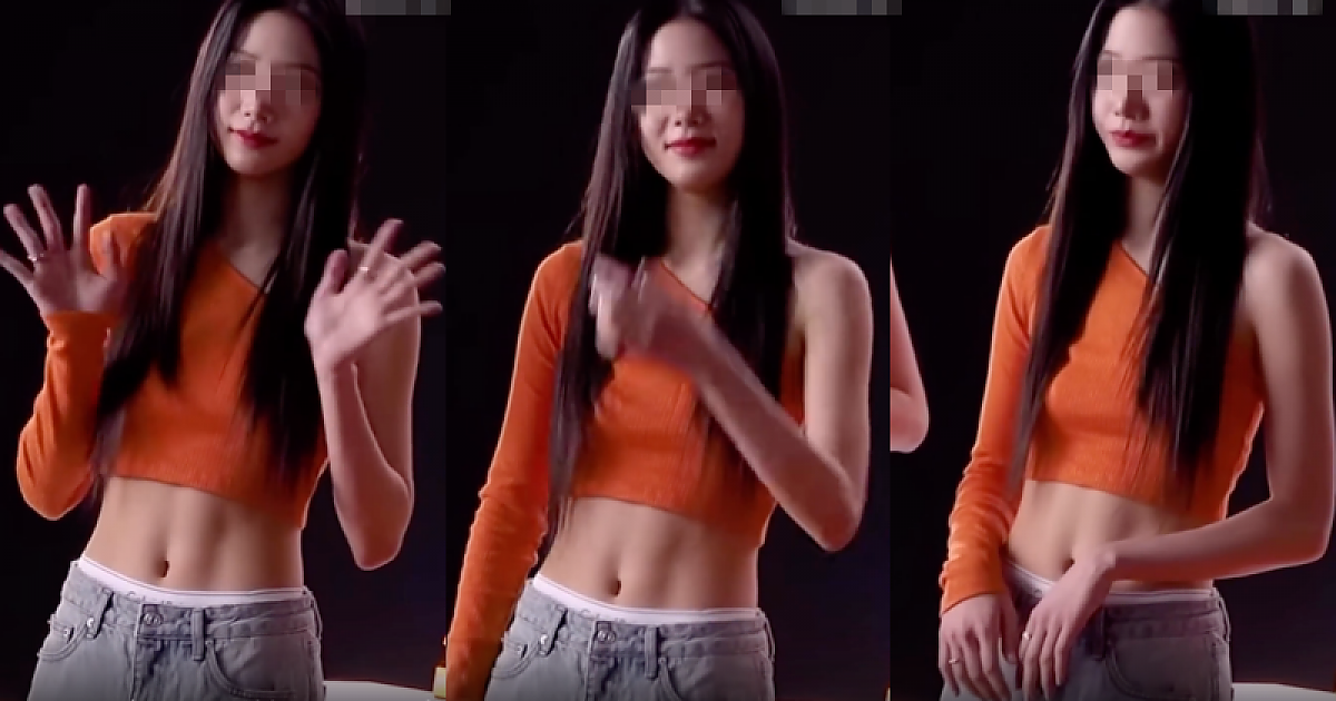 [르세라핌] 몸에 붙는 '긴팔 크롭'의상으로 '우윳빛 몸매'속 11자 복근 과시하는 아이돌( 영상)