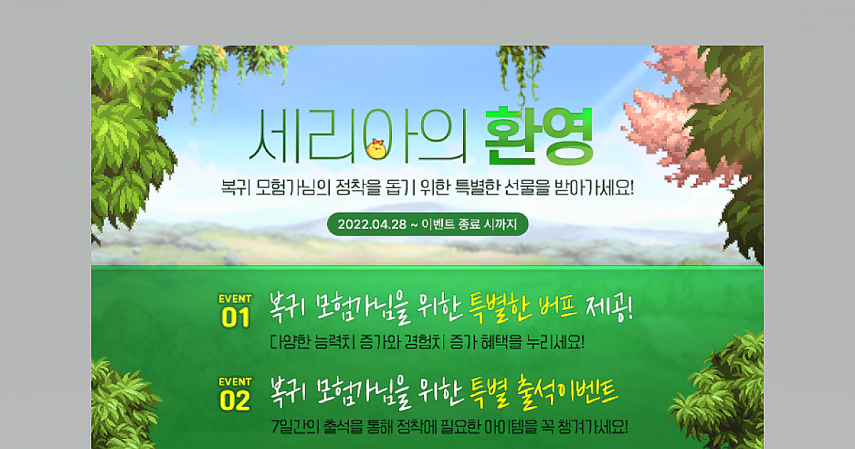 스샷에 보시면 세리아의 환영 이라고 복귀유저만 해당되는 이벤트를 시작했는데요