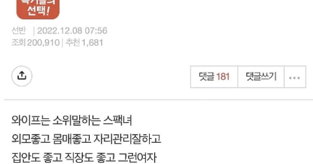 와이프가 나랑 결혼한 이유를 우연히 들었음