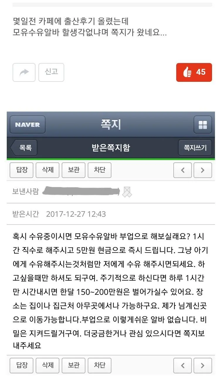 맘카페 시끄러웠던 ㅁ유 수유 알바 레전드 사건