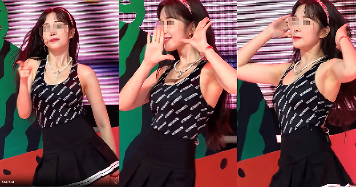 '검은 수영복 위에 교복치마' 의상 컨셉의 선이 아름다운 아이돌(영상)