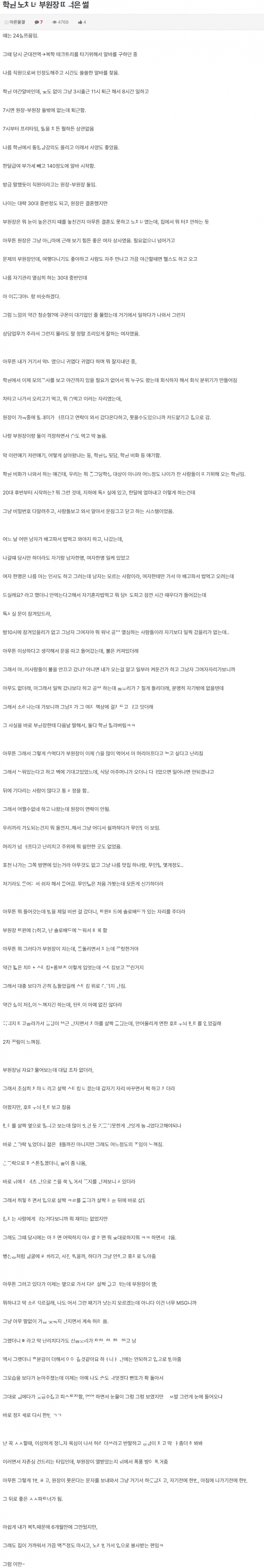 ㅎ원 노ㅊ녀 부원장과 ㅅ마시고 무인ㅌ 갔다가 ㅈ고 있을때 은ㅁ하게 ㅂ은 썰