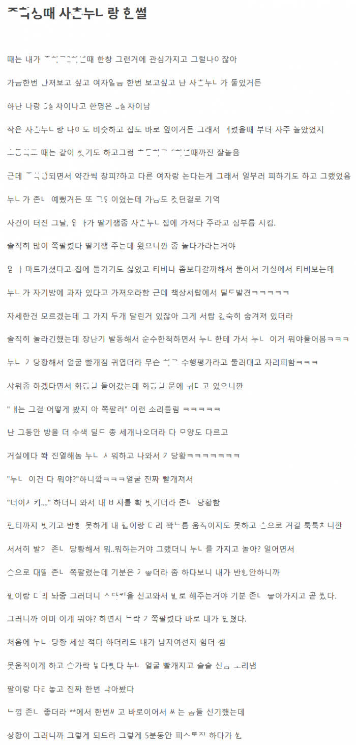 사ㅊ눈나의 딜ㄷ 발견해서 그거 뭐냐고 하다가 은근슬쩍 ㅂㅈ에 ㅂ아버린 이야기