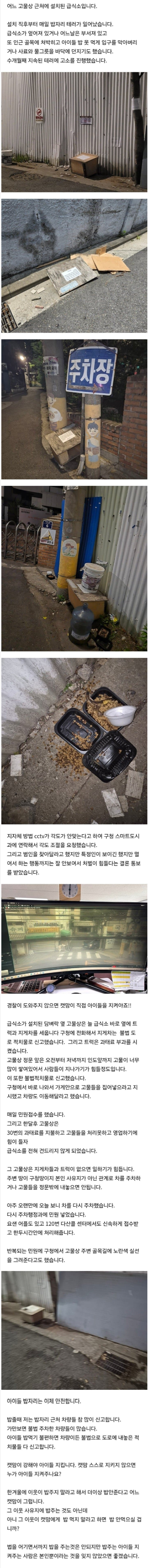 남의 영업장 근처에 무단 적치하고 민원 테러한 캣맘
