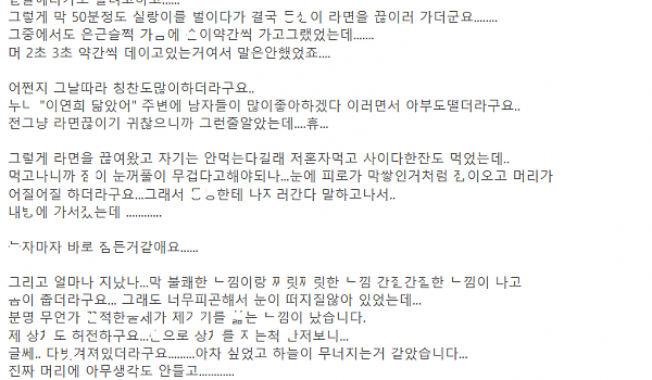 ㅅ기 쩌는 마ㄴ라의 언ㄴ가 ㅈ고 있던 나를 덮ㅊ다..