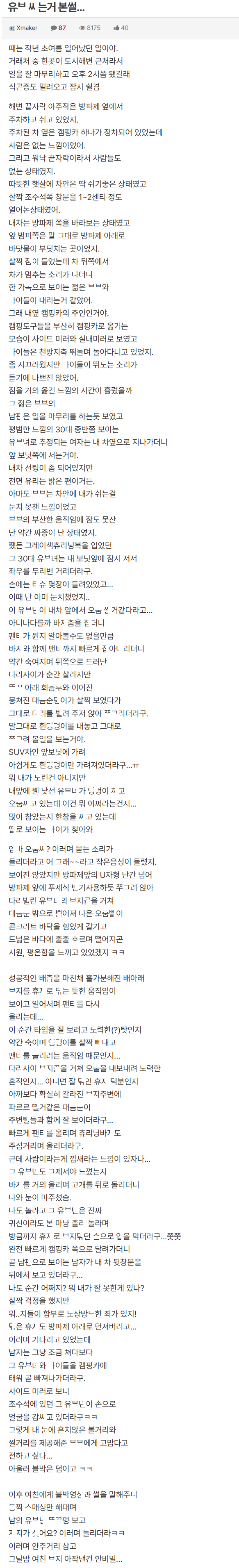 해변 갔다가 유ㅂ녀가 ㅂㅈ 내놓고 ㅆ고 있는거 본 썰