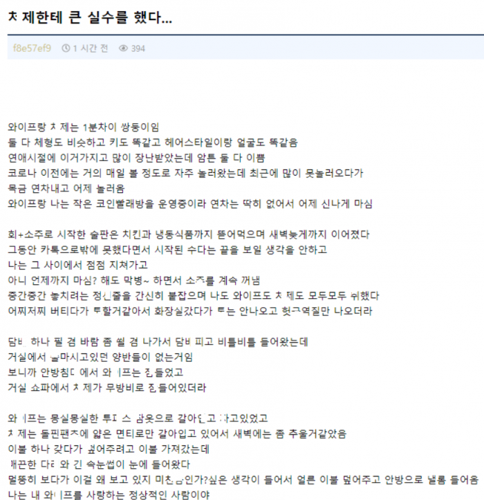 ㅈ고 있던 쌍둥이 ㅊ제를 와잎으로 착각하고 ㅈㅈ를 ㅂ은 남자