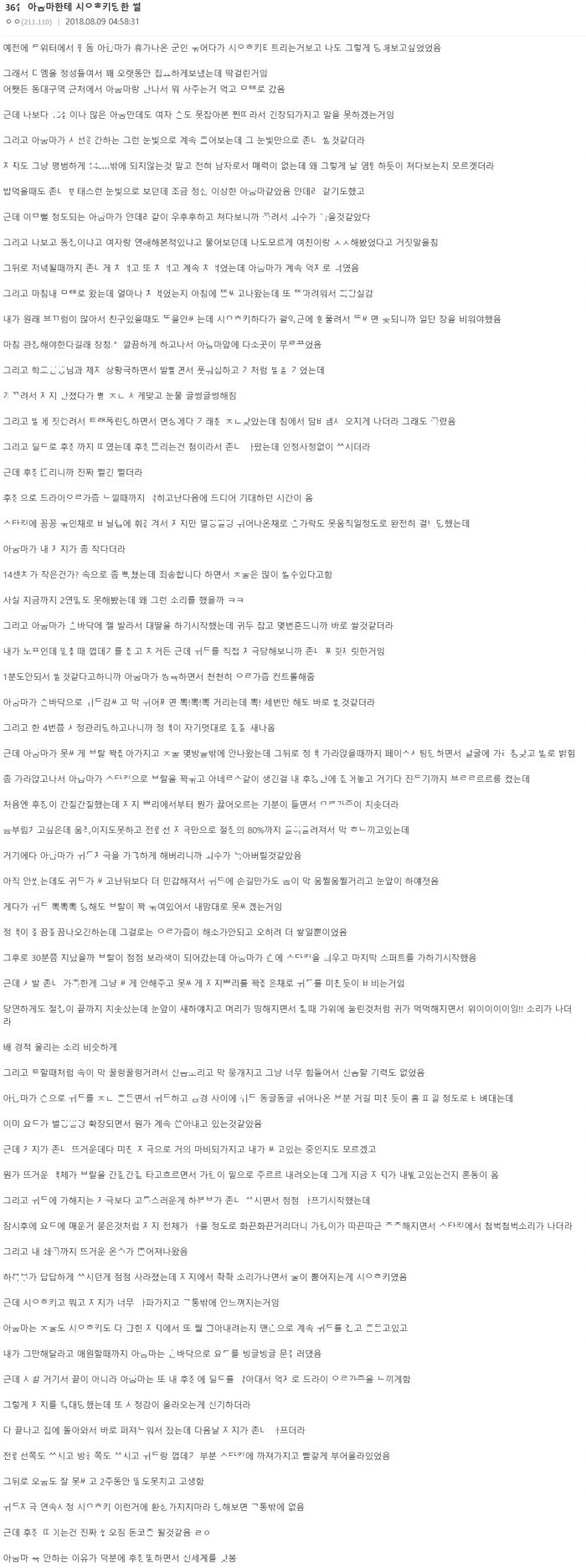 아ㅈ마한테 시ㅇ후ㅋ ㄷ한 썰