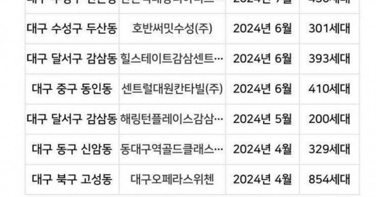 아파트를 엄청 만들던 대구 근황