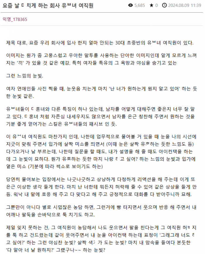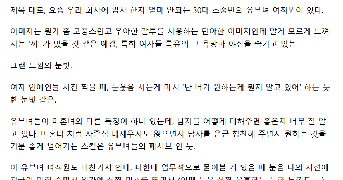요즘 날 ㄲ리게 하는 회사 유ㅂ녀 여직원