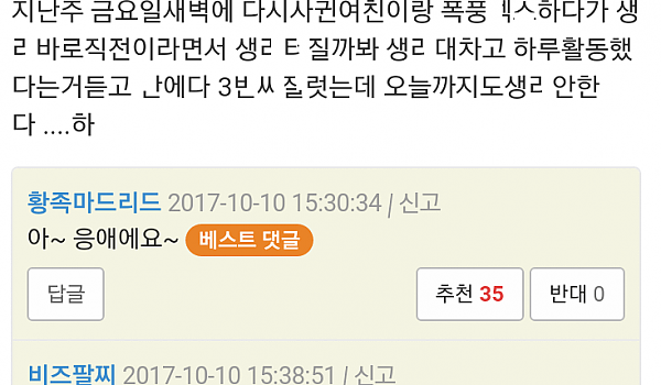 여친 생ㄹ 한대서 ㅈㅆ ㅈㄴ 했는데..