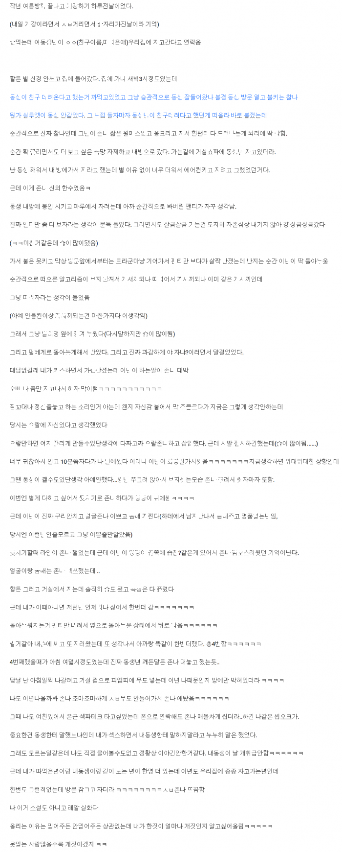 여ㄷㅅ의 칭구가 놀러와서 ㅈ고 있을때 덥ㅊ 썰